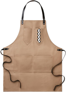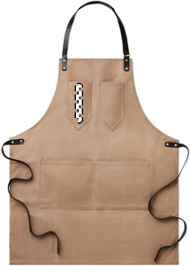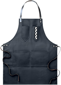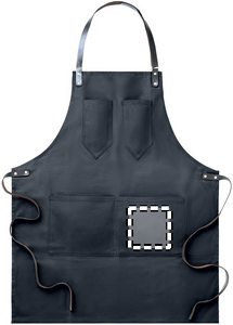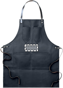 Esiliina vahattua kangasta, nahkaisilla yksityiskohdilla. Säädettävä hihna, 2 rintataskua ja yksi isompi tasku. 12 oz vahattua kangasta.