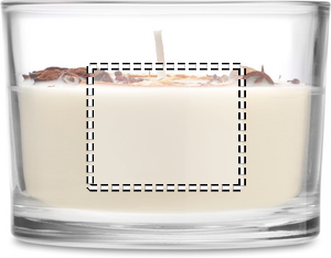 Kanelilta ja sitruksilta tuoksuva kasvipohjainen vahakynttilä, jossa on kuivattuja kukkia ja hedelmiä lasipurkissa . 300 gr. Paloaika: 50 tuntia.