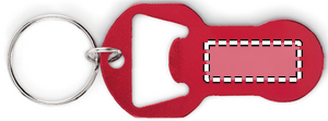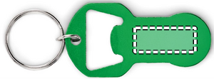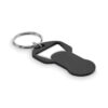Kierrätetystä alumiinista valmistettu pullonavaaja-avaimenperä, jossa on rautarengas.