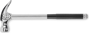 Kärkivasara ja ruuvimeisseli hiiliterästä. Kahvaan integroidut 4 vaihtopäistä ruuvimeisseliä.