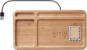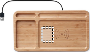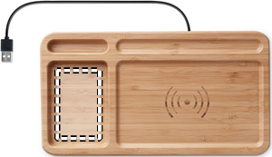 Bambuinen työpöydän järjestelijä langattomalla latauksella, sisältää 80 cm USB latausjohdon. Lähtövirta DC5V/1A (5W). Luonnonmateriaalin vuoksi tuotteen paksuus ja pinta, voivat vaihdella tuotetta kohden, tämä voi vaikuttaa lopullisen painatuks