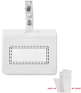 PVC nimilapputasku metalliklipsillä.