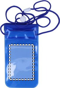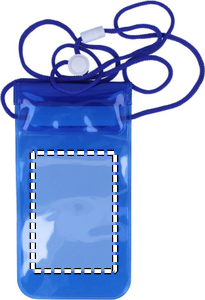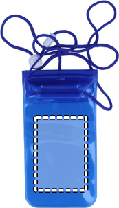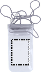 PVC- muovinen vedenkestävä älypuhelintasku, polyesterinauha turvalukolla ja kiristimellä. Pussin ohut pinta mahdollistaa älypuhelimen käytön ulkopuoleisesti.