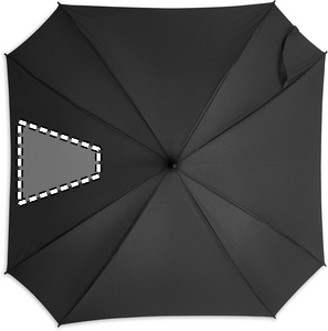 27 tuuman neliön muotoinen, automaattisesti avautuva/sulkeutuva tuulenkestävä sateenvarjo 190T pongee-materiaalista. Kahva ABS-kumipintainen. Kahva ja ruoteet lasikuitua.