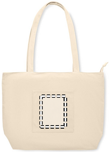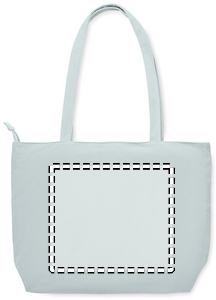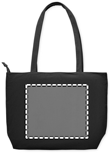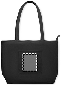 Suuri ostos-/rantakassi polyesterisamettikankaasta, vetoketjukiinnitys, avoin etutasku ja sisätasku. 220 g/m².
