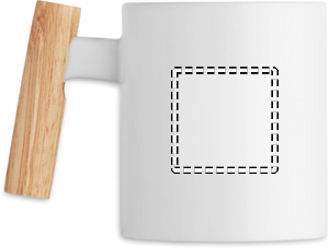 Keraaminen muki puisella kahvalla. Tilavuus: 320 ml. Yksittäin pakattu valkoiseen pahvilaatikkoon.
