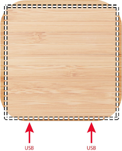 Langaton laturi bambusta, 2 USB 2.0 keskittimellä. Lähtövirta DC5/1A (5W) . Luonnollisen materiaalin (bambu) vuoksi, tuotteiden värissä/ koossa saattaa olla erinäisyyksiä ja tämä voi vaikuttaa painatuksen lopputulokseen.