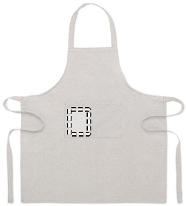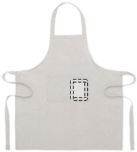 Säädettävä keittiöesiliina, jossa 1 etutasku, 220 gr/m² kierrätettyä puuvillaa.
