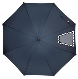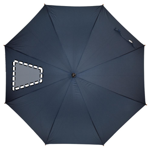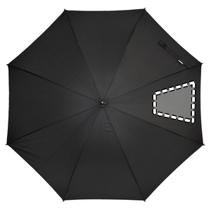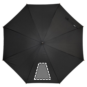 190T RPET pongee 23 tuuman automaattinen sateenvarjo, puisella kahvalla-, kärjillä- ja päällä. Mustalla päällystetty metallinen ruode, manuaalinen suljin.