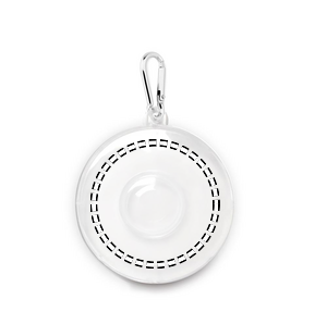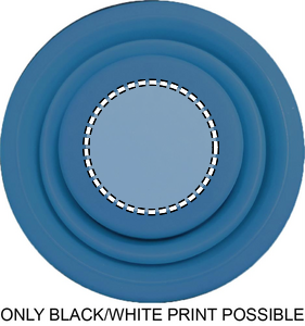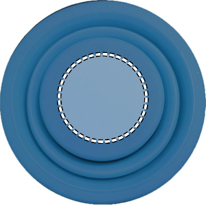 Taitettava silikonikuppi, pillerisäiliöllä ja karabiinikoukulla.