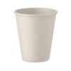 Uudelleenkäytettävä yksiseinäinen muki PLA-maissimuovista. Tilavuus: 200 ml. Koska kyseessä on yksiseinäinen muki, lämmönsiirtoa voi silti tapahtua.