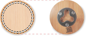 Bambuinen pullonavaaja/ lasinalunen. Luonnollisen materiaalin (bambu) vuoksi, tuotteiden värissä/ koossa saattaa olla erinäisyyksiä ja tämä voi vaikuttaa painatuksen lopputulokseen.