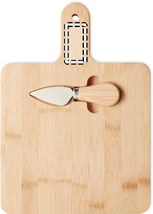Bamboo cheese set with a serving board and knife. Present your guests with some cheese or other types of food and snacks on this wooden platter. It has a handle for easy carrying. The hole in the handle can be used to hang the serving board when not in use. Bamboo is a natural product, there may be slight variations in colour and size per item, which can affect the final decoration outcome.