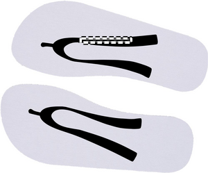 Mukavat sublimaatio varvastossut PVC varvasremmillä. Pohja on valmistettu kumista, joka on päällystetty polyesterisellä kerroksella. Täydellinen jalkine kuumiin kesä päiviin, tai aktiviteetteihin joissa jalkineet saattavat kastua. Koko sopii 44-46.