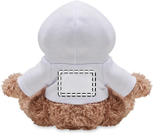 Koira pehmolelu, jolla on hupullinen paita. Ihanteellinen sublimaatiopainatusta varten.