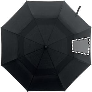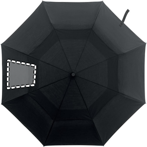 21 tuuman kahteen osaan taittuva, automaattisesti avautuva ja tuulenpitävä sateenvarjo 190T-polypuuvillamateriaalista. Täysalumiininen varsi, kärjet ja bambukahva. Mustat lasikuituruoteet. Mukana suojapussi. Automaattinen sulkeminen.