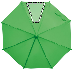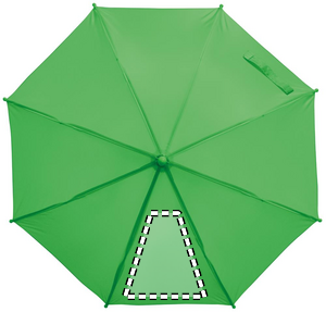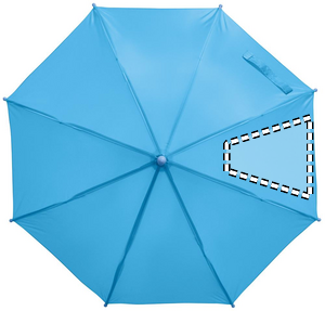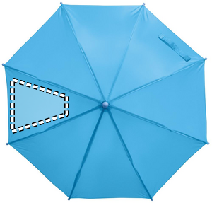 18 tuuman automaattisesti avautuva lasten sateenvarjo. Metallinen varsi ja harjat, 190T polyesteriä. Kahva, kärjet ja yläosa PP:tä.
