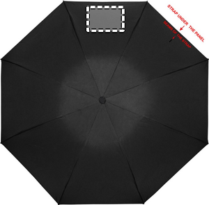 190T pongee 23 tuuman automaattinen sateenvarjo, kromattu teräsrunko ja lasikuituruoteet. Musta ABS-kahva painonapilla, sisältää samanvärisen suojapussin.