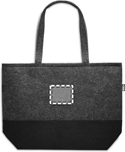 RPET felt shopping bag with long handles and coloured base. The contrasting colours of the bottom and top of this tote bag make make it noticeable and more stylish than others. An ideal bag for daily grocery shopping. Carry the bag over your shoulders to keep your hands free. This bag is made from recycled PET plastic.