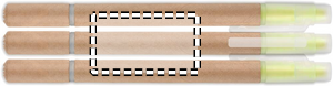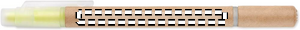 2 in 1 kuulakärkikynä kartonkisella rungolla ja sinisellä musteella, kynän päässä korostuskynä keltaisella tussilla.