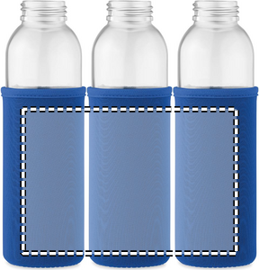 Kierrätyslasipullo, jossa neopreenipussi ja PP-korkki silikoniripustimella. Vuotamaton. Tilavuus: 500 ml.