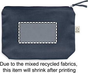 Kosmetiikkalaukku kierrätyskankaasta (70 % kierrätettyä puuvillaa ja 30 % RPET-polyesteriä) yhteensopivalla vetoketjunvetimellä. 320 gr/m². Tuote voi kutistua painatuksesta johtuen.