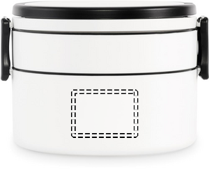 Kaksikerroksinen pyöreä lounasrasia PP-muovista, sivussa klipsukiinnitys ja kahvat. Sisältää sisäkannet. Tilavuus 250 ml yläosasta, 700 ml alaosasta.