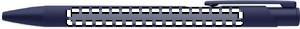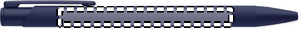Kierrätetystä alumiinista valmistettu kynä, jossa on rautaklipsi ja värillinen kumipintainen runko. Sininen muste.