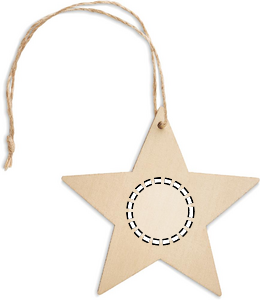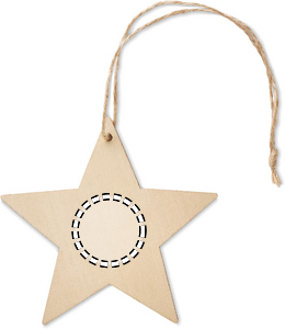 Puinen MDF tähden muotoinen kuusenkoriste juuttilankaripustimella. Luonnollisen materiaalin (MDF) vuoksi, tuotteiden värissä/ koossa saattaa olla erinäisyyksiä ja tämä voi vaikuttaa painatuksen lopputulokseen.