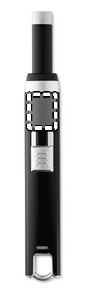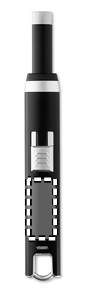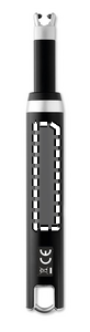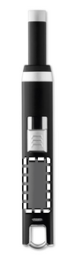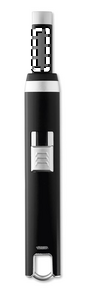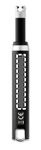 USB ladattava sytytin yksikaarisella liekillä, sisältää ladattavan 220 mAh litium akun ja USB latauskaapelin.