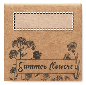 Puristettu turvekiekko kesäkukkien siemenseoksella, pahvilaatikossa. Valmistettu EU:ssa.