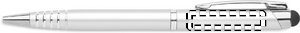 Kierrätysalumiinista valmistettu kuulakärkikynä, jossa on kosketusnäyttöpää. Sininen muste.