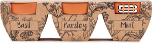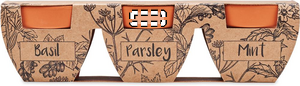 Kasvata oma pieni kasvimaasi tällä savi terrakotta ruukkusetillä. Setti sisältää 3 erilaista yrttiä: mintun, persiljan ja basilikan. Valmista maukkaita aterioita kasvattamillasi yrteillä. Tuote on hyödyllinen, mutta myös ideaalinen tuomaan pientä vihreyttä sisustukseesi. Yrtit voi myös istuttaa ulkoilmaan, riippuen asuinympäristöstäsi.