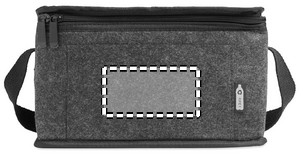 RPET-huopakylmälaukku, jossa on etutasku. 1 mm:n RPET-huopa ja 3 mm:n eristävä alumiinilaminoidut foliot. Tilavuus: 5 L.