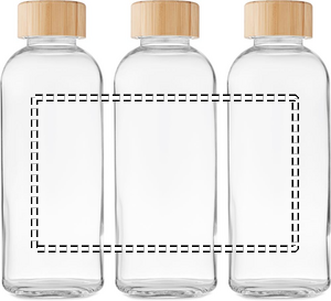 Glass bottle with bamboo lid. Capacity: 650ml. Keep a water bottle with you during the day to stay hydrated and healthy. The wooden bamboo lid gives this bottle a natural look and makes it stand out more than regular glass bottles. Leak free. Bamboo is a natural product, there may be slight variations in colour and size per item, which can affect the final decoration outcome.