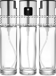 Lasinen 100 ml öljynannostelija. Tämän kätevän keittiötyökalun avulla voit suihkuttaa öljyä pannulle tai ruoan päälle helposti. Älä enää koskaan tiputtele liikaa oliiviöljyä salaattiin taikka pannullesi.