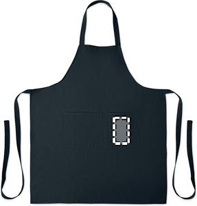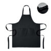 Säädettävä esiliina, jossa yksi suuri etutasku ja kaksi lokeroa. Valmistettu 240 g/m² luomupuuvillasta. Kaulanauhassa säädettävä nappi. Tämä tuote on OEKO-TEX® STANDARD 100 -sertifioitu.