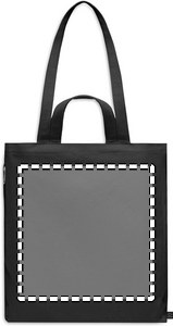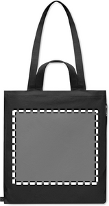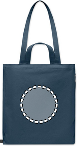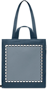 Kierrätysmateriaalista valmistettu ostos- tai rantakassi lyhyillä kantokahvoilla. Kassissa on vetoketjullinen sivutasku. Materiaali 70 % kierrätettyä puuvillaa/ 30 % kierrätettyä polyesteriä, 380 gr/m².