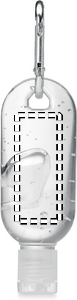 30 ml käsienpuhdistusgeeli PET pullossa, karabiinikoukulla. Karabiinikoukkua ei ole tarkoitettu kiipeilemiseen (ei ammattikäyttöön)