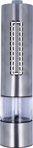 Ruostumattomasta teräksestä valmistettu sähköinen suola- tai pippurimylly. Paristot eivät sisälly toimitukseen.