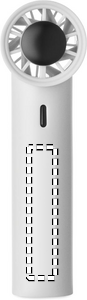 Minikokoinen kädessä pidettävä tuuletin ABS-muovista, jossa näyttö ja 5 nopeusasetusta. Sisältää vaihdettavan 2600 mAh:n ladattavan litiumpariston.