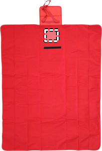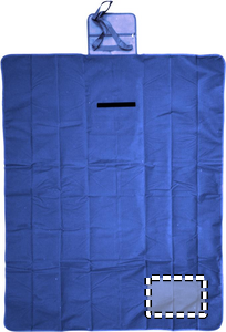 Foldable fleece blanket with plastic coated PEVA reverse side.