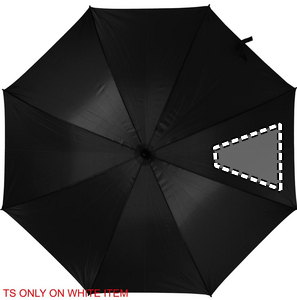 Manuaalinen 30 tuuman tuulenkestävä sateenvarjo 190T polyesteriä, lasikuituvarsi ja ruoteet. Mustat muovikärjet, yläosa ja suora kahva, manuaalinen suljin.