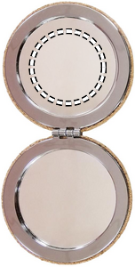 Pyöreä kaksipuolinen taskupeili korkkikuorilla. Korkki on luonnonmateriaali, strukturaalinen laatu ja pinnan huokoisuus voi aiheuttaa eroavaisuuksia tuotteissa painatuksen jälkeen