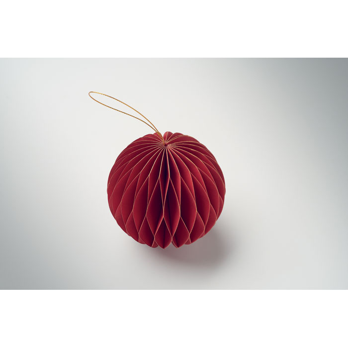 Taitettava paperinen joulupalloripustin, jossa magneettisuljenta.