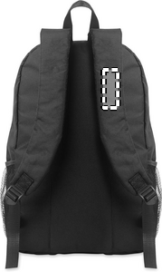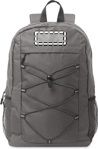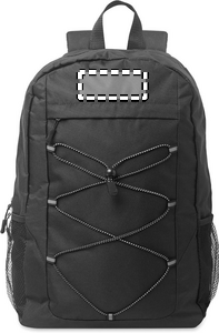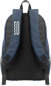Reppu 600D RPET-polyesteristä koristenauhalla ja vetoketjullisella etupaneelilla. Verkkotaskut molemmilla puolilla.