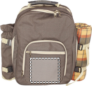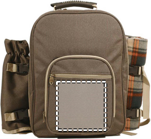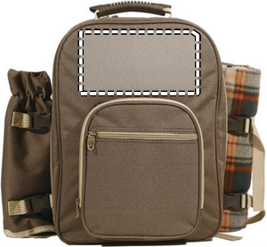 600D polyesterinen picnic reppu neljälle hengelle, sisältää viltin, pullon pidikkeen ja laadukkaat astiat.
