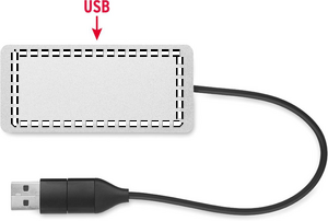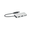 3 portin USB-keskitin kierrätettyä alumiinia. Lähtö: 2 x Type-A ja 1 x Type-C. Tulo: 2-in-1 Type-C and Type-A. Kaapelin pituus: 20 cm.