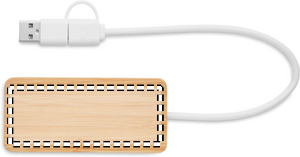 3-porttinen USB-C/A-keskitin bambukotelossa. 1 x Type-C ja 2 x Type-A. Lähtö: 2 x Type-A ja 1 x Type-C. Tulo: 2-in-1 Type-C ja Type-A. Kaapelin pituus: 20 cm.