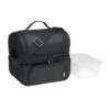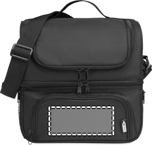 Insulated cooler bag in 600D RPET includes a reusable PP 1900ml capacity lunch box. With 2 sections to store hot and cold food separately. Adjustable and detachable shoulder strap. 2mm aluminium foil lining.